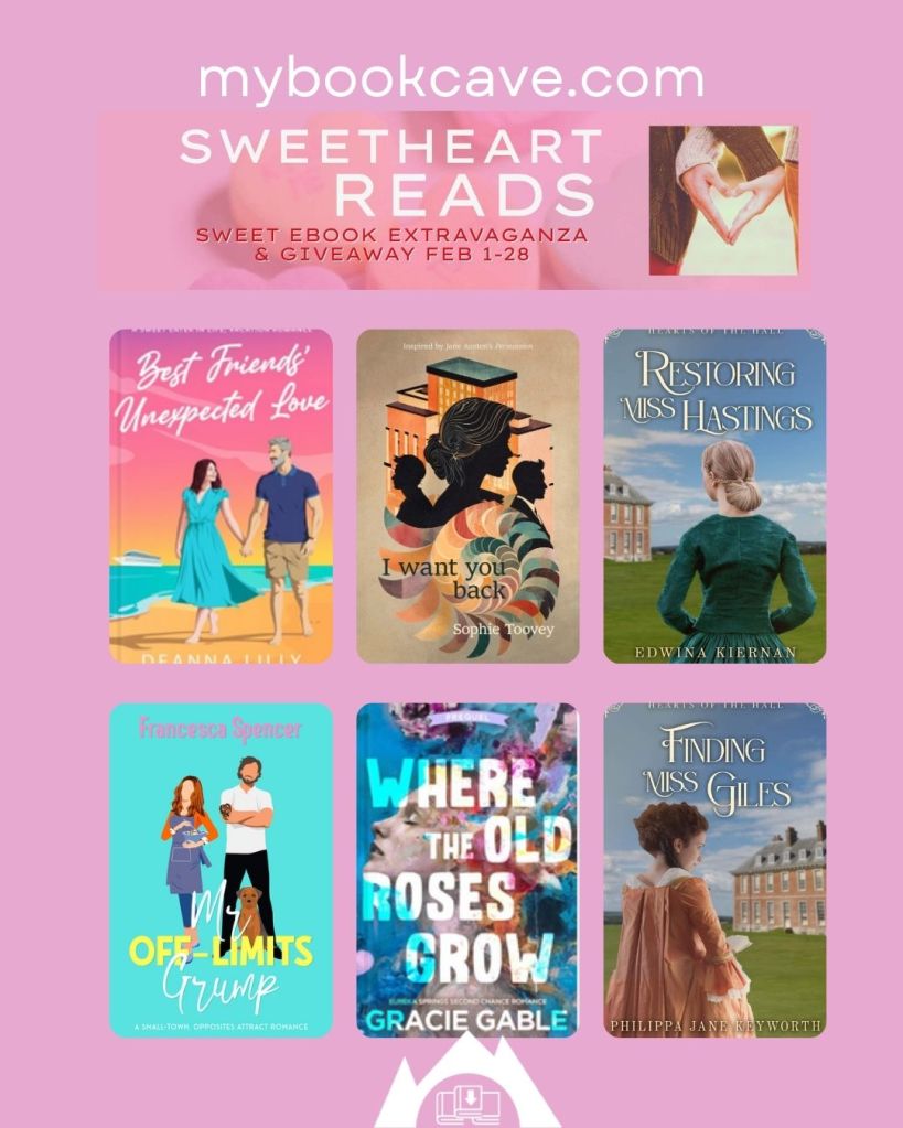 Sweetheart Reads Extravaganza Posted bySophie TooveyFebruary 6, 2025February 5, 2025Posted inclean romance, giveaway, Reading, RomanceTags:books, Romance Fill up your Kindle or ereader with romances from these FREE ebooks. Click on the covers of the books you want, sign up to learn a little more about the authors, and start reading. Don’t forget to enter to win the gift card. Enjoy! Share this: Click to share on X (Opens in new window) X Click to share on Facebook (Opens in new window) Facebook Like Loading... Related