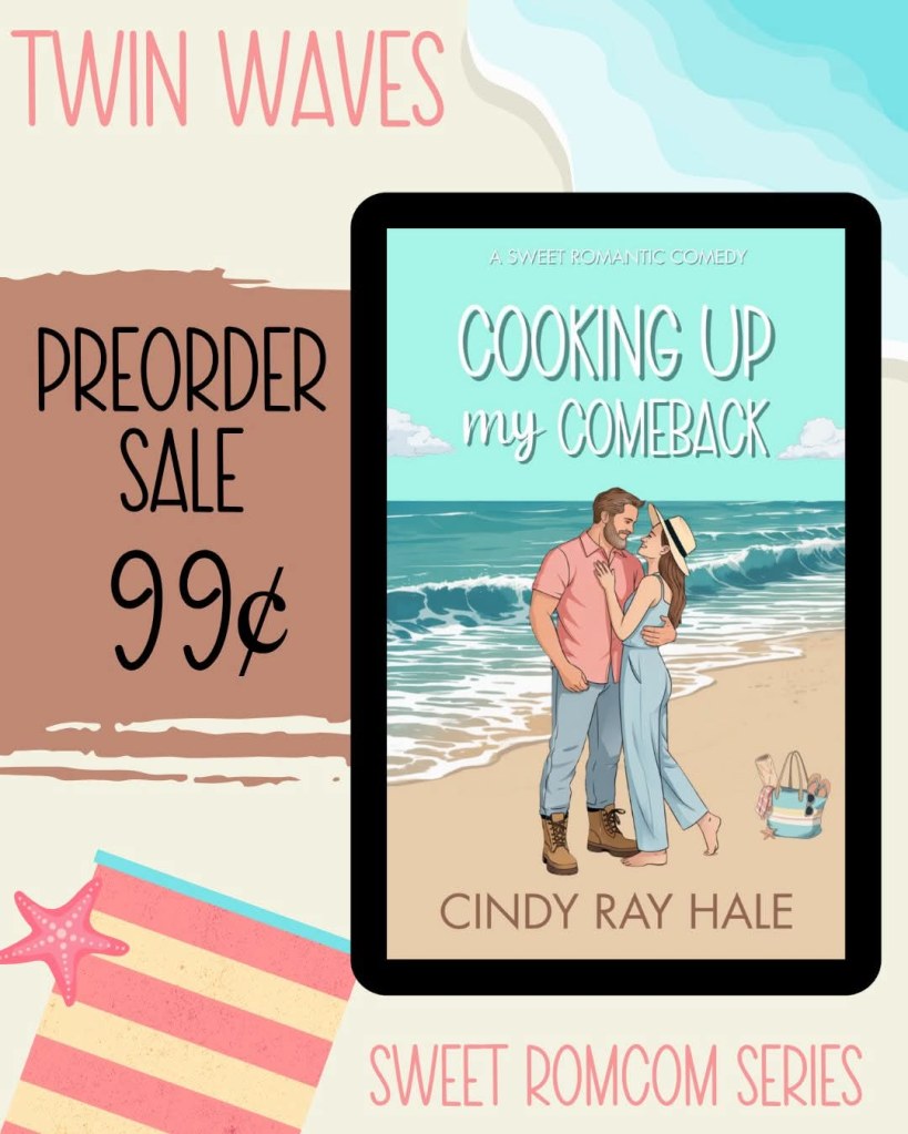 Cooking Up My Comeback is the first book in the Twin Waves Sweet Romcom Series featuring the Twin Waves Bookaholics Anonymous book club ladies getting their happily ever afters!