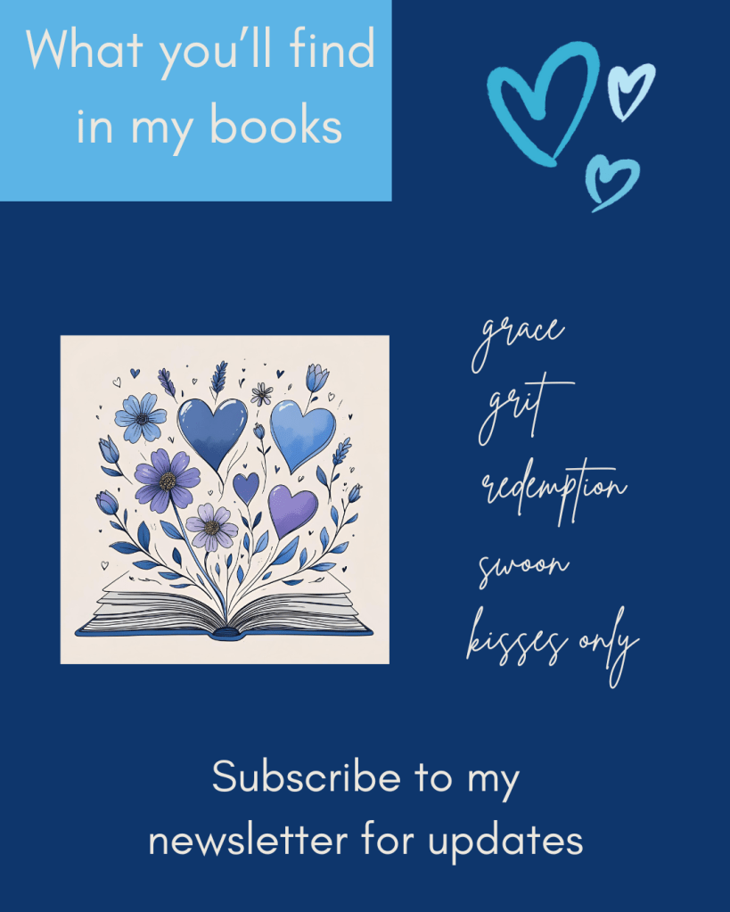 My books span genres — from romcom to dystopian romance to YA — but romance is always the heartbeat. Expect swoon (kisses‑only), witty banter, strong female leads, and flawed characters who grow through the grit. My Christian faith shapes the way I write: grace, redemption, and hope run through everything I create.